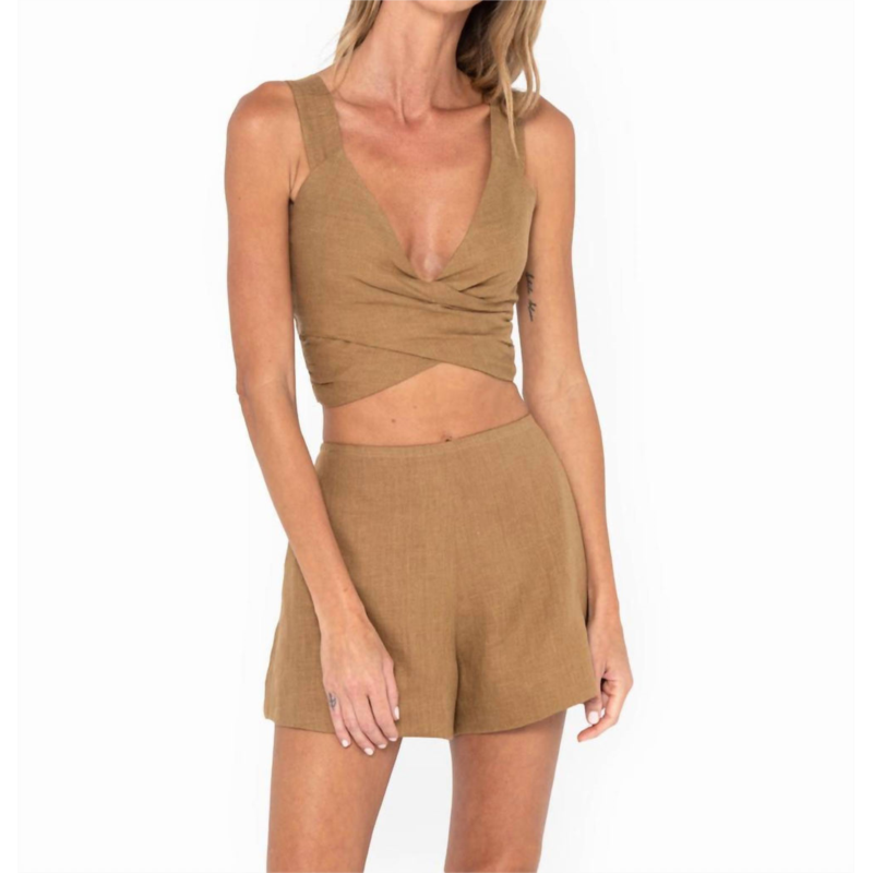High-waist is here to stay and we especially love this style short.Embrace effortless style with the Amalia Pull On Shorts by JBQ, designed in a rich Ginger hue. These high-waisted shorts feature a comfortable pull-on design with pockets, offering both style and practicality. Crafted from a cotton and linen blend, they are perfect for summer, complementing the relaxed fit and breezy nature of the fabric. Easy to care for, you can machine wash them without fuss. Model is 5''9'' and wearing a size XS.