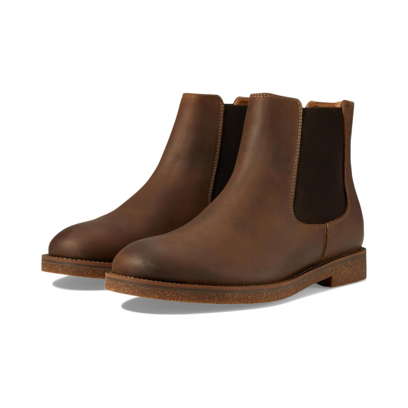 - Never stop exploring wearing the Dockers Novato. Crafted from leather upper, this pair of boots features round toe design, low-stacked heel, elasticized goring, and back pull tabs. It comes with recycled post-consumer polyester, moisture-wicking linings and quilted microfiber counter lining for added comfort.