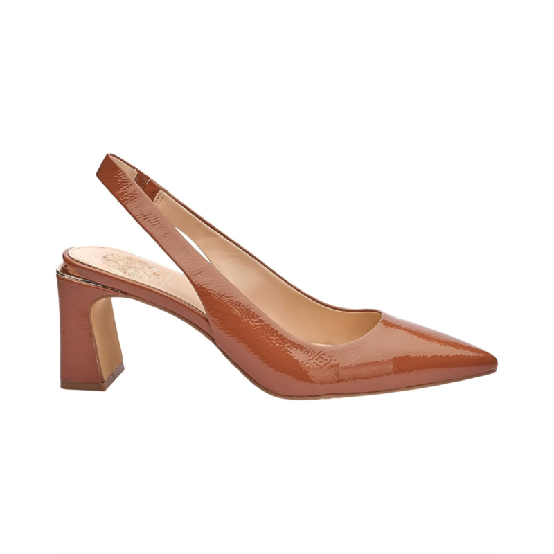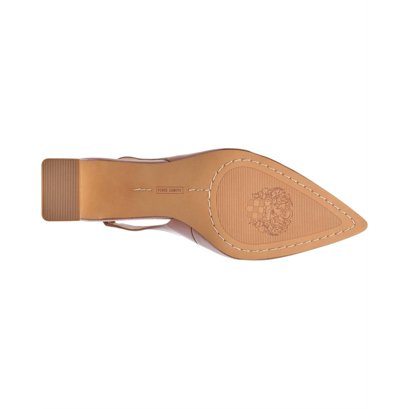 - Set a timeless aesthetic wearing the Vince Camuto Hamden featuring a classic pointed toe, sling back heeled sandal constructed from genuine leather and a padded insole footbed for a comfortable all day wear.
