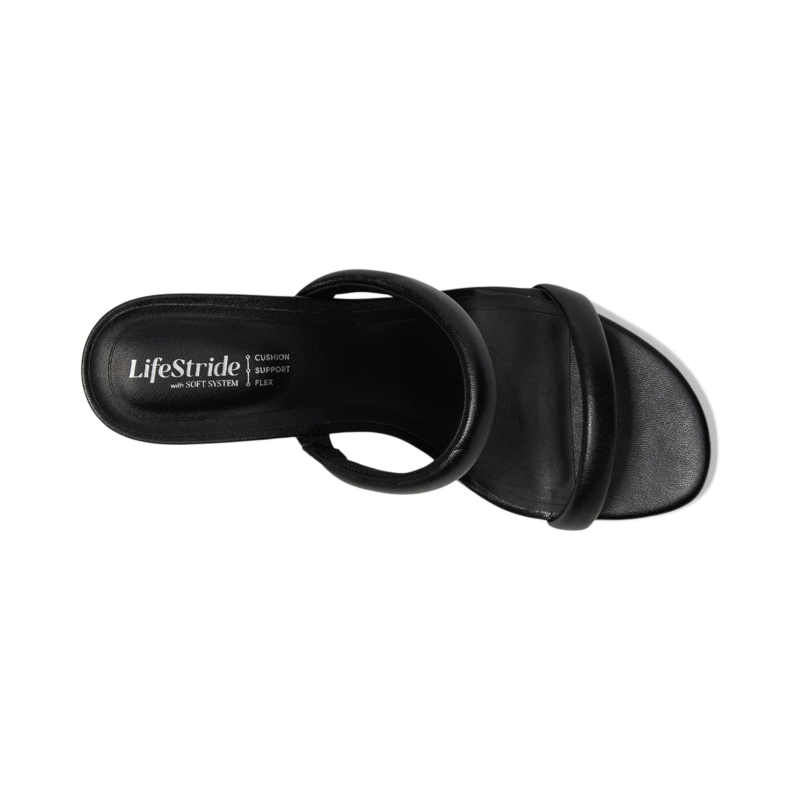 - The art of effortless style: Experience the LifeStride Nalani, your new comfort essential. Designed with a sleek faux leather upper and ultra-soft PU lining, these strappy slip-on heels elevate any look with ease. The open round toe and plush padded straps add a touch of modern sophistication, while the hourglass-shaped kitten heel delivers the perfect balance of height and wearability. Crafted with Soft System comfort technology, experience superior cushioning, support, and flexibility in every step. A traction synthetic rubber outsole ensures extra stability, so you can strut with confidence. Plus, sustainable linings made from partially recycled materials make these heels a smart and stylish choice. Whether dressing up or keeping it casual, Nalanis trend-forward design keeps you effortlessly on point.