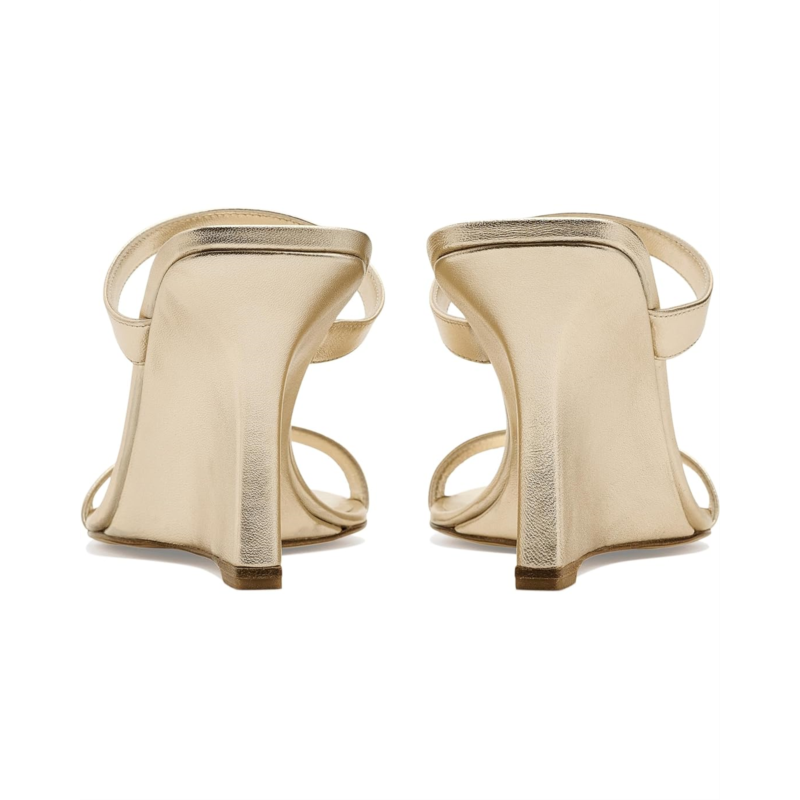 - The Stuart Weitzman Vinnie Wedge Slides feature slim leather straps and open square toe design for a clean, modern look. Set on a wrapped wedge heel, these slip-on slides offer subtle height while maintaining everyday comfort.