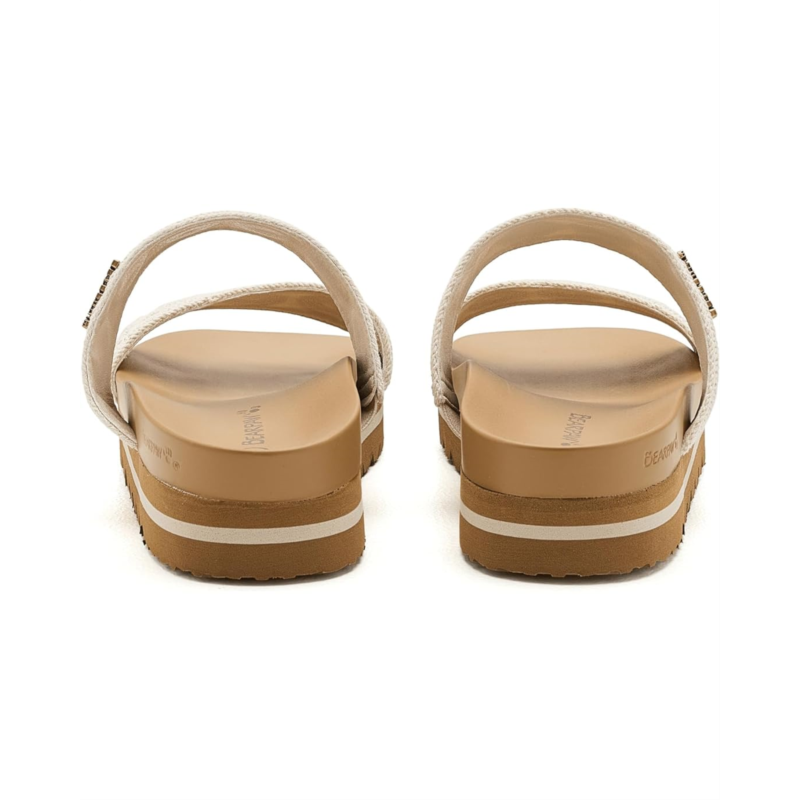 - The Bearpaw Mandy Sandals are made with simple style and reliable comfort for everyday movement. The faux leather upper features dual straps, allowing an easy slip-on fit for casual wear. The faux leather lining and insole ensure comfort with every step you take.