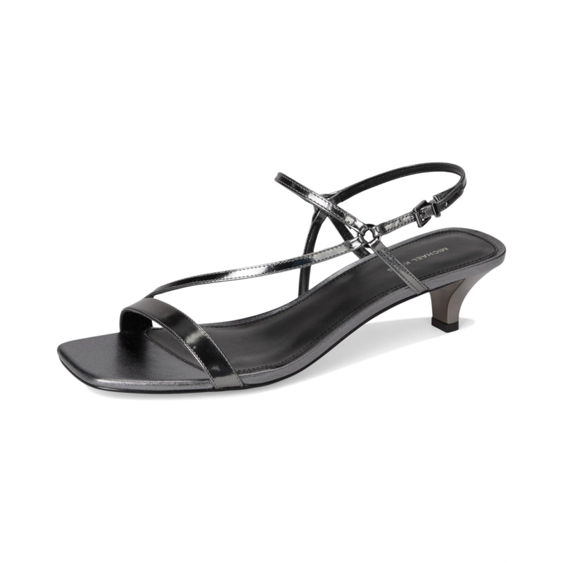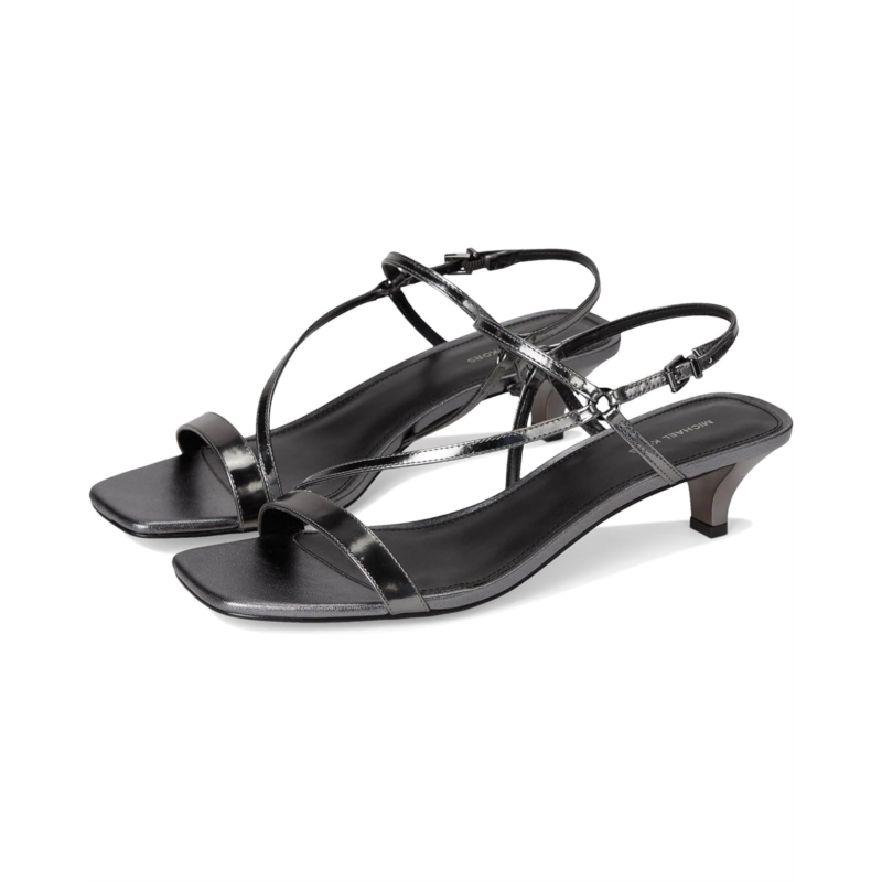- MICHAEL Michael Kors Selina Kitten Sandals are defined by their strappy harness-inspired upper accented with dainty rings that bring an edgy touch, elevated by a kitten heel. Made from a supple leather upper, faux leather lining, and insole.
