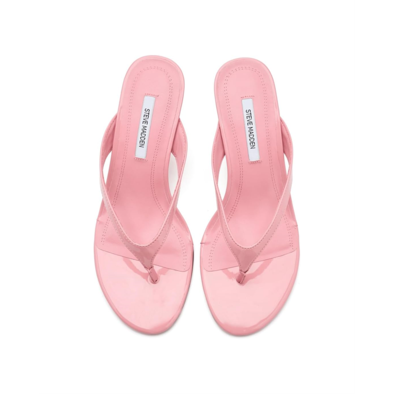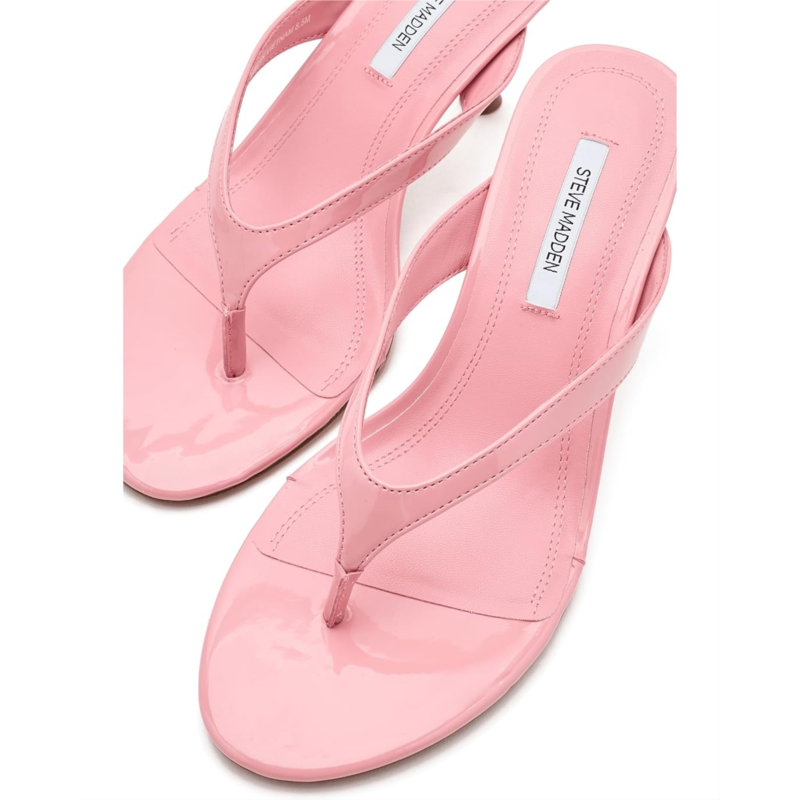 - The Steve Madden Faroh Sandal delivers refined elegance with its open rounded toe silhouette and graceful stiletto heel. This versatile style transitions seamlessly from casual daytime wear to evening occasions, offering a sophisticated alternative to traditional footwear. The thong construction on the polyvinyl chloride upper provides a secure yet breathable fit, while the synthetic rubber lining & rubber insole add comfort with every step. These slip-on style heels are perfect for those seeking understated luxury with everyday wearability.