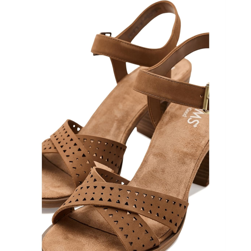 - The TOMS Majorca Ankle Strap sandals are strappy sandals featuring block heels and an ankle strap. These heeled sandals are made of a nylon upper and a polyester lining. Their Custom CloudBound foam insole offers all-day comfort and support. The adjustable buckle closure offers a perfect fit. Match your party outfits and dresses with these slip-on sandals.
