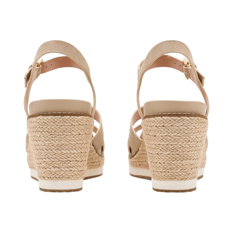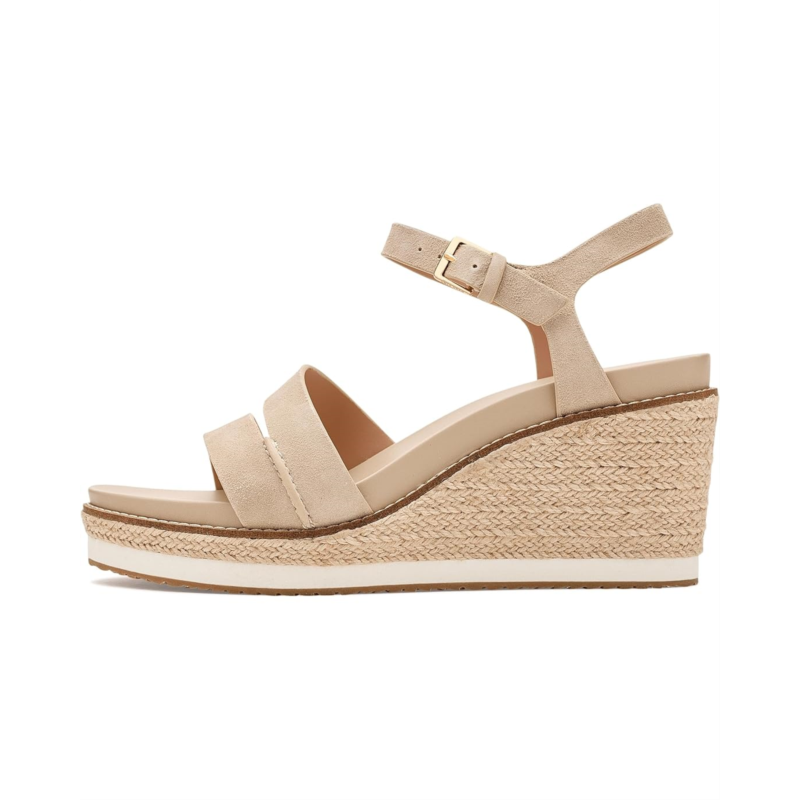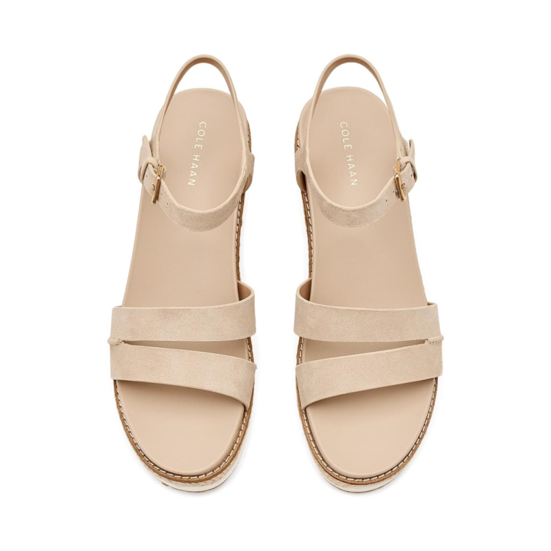 - Experience the perfect harmony of timeless Mediterranean style and modern engineering in the Cole Haan Cloudfeel Ronnie Espadrille. Crafted with a premium leather upper, these elegant wedge sandals deliver a polished look that effortlessly complements both business-casual outfits and relaxed everyday styles. The breathable textile lining keeps your feet feeling fresh, while the lightweight Ethylene Vinyl Acetate insole provides plush cushioning for lasting comfort. Thanks to the advanced Cloudfeel Technology, every step feels lighter, more flexible, and incredibly supportive, perfect for long days on the move. The espadrille wedge silhouette adds a refined, fashion-forward lift without compromising stability. Finished with a secure buckle ankle strap closure, these sandals offer a customized fit and confident stride.