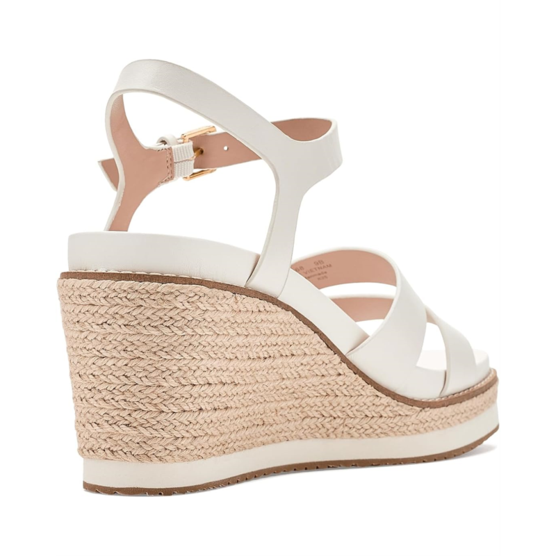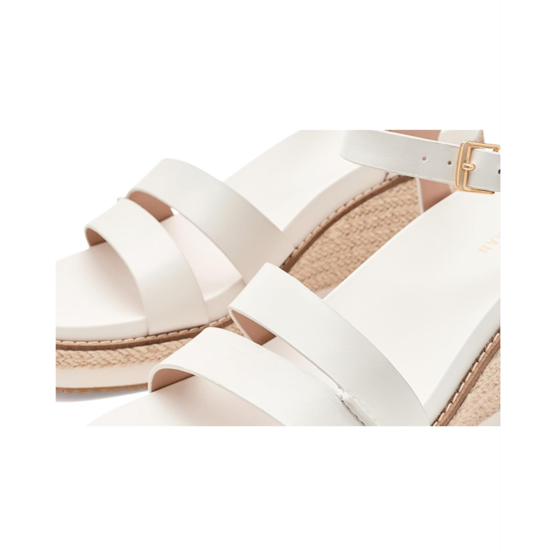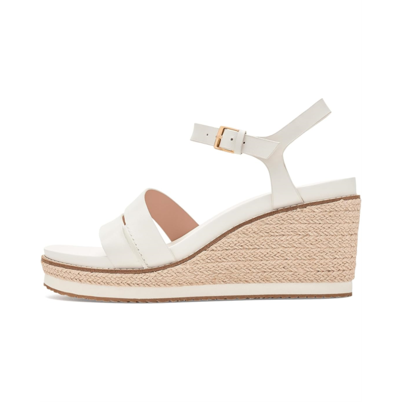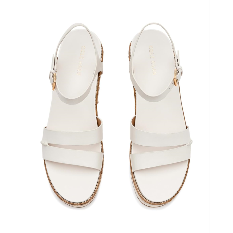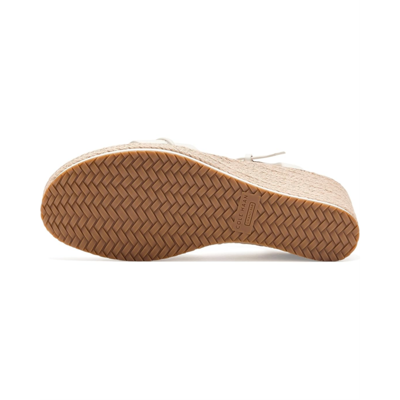 - Experience the perfect harmony of timeless Mediterranean style and modern engineering in the Cole Haan Cloudfeel Ronnie Espadrille. Crafted with a premium leather upper, these elegant wedge sandals deliver a polished look that effortlessly complements both business-casual outfits and relaxed everyday styles. The breathable textile lining keeps your feet feeling fresh, while the lightweight Ethylene Vinyl Acetate insole provides plush cushioning for lasting comfort. Thanks to the advanced Cloudfeel Technology, every step feels lighter, more flexible, and incredibly supportive, perfect for long days on the move. The espadrille wedge silhouette adds a refined, fashion-forward lift without compromising stability. Finished with a secure buckle ankle strap closure, these sandals offer a customized fit and confident stride.