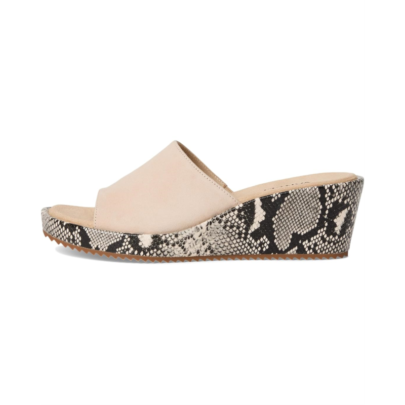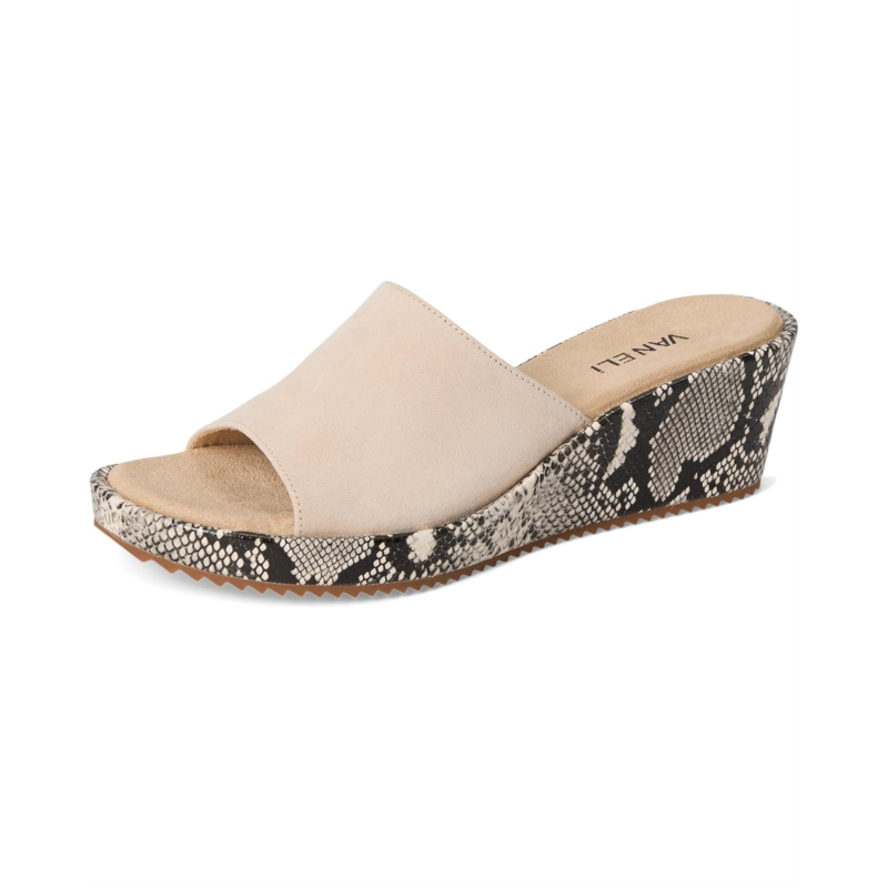 - Stride with confidence wearing the Vaneli Calla wedge sandals. The slip-on footwear features suede upper construction with leather lining and rubber insole for added comfort.